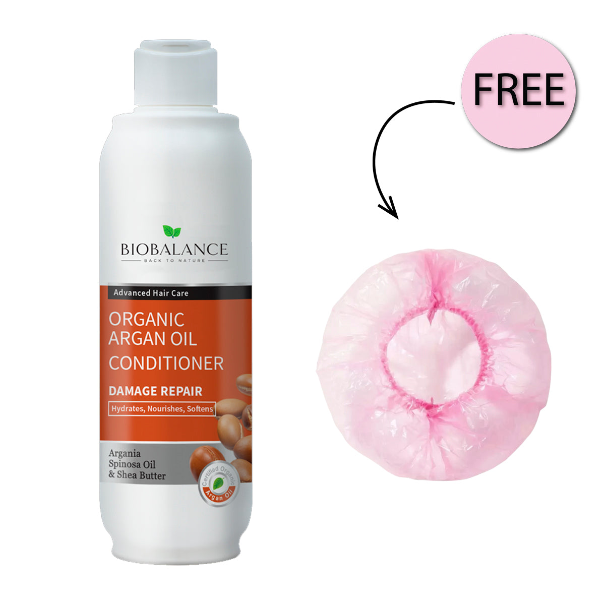 Bio Balance Organic Argan Oil Damage Repair Conditioner 330ml + Free Shower Cap