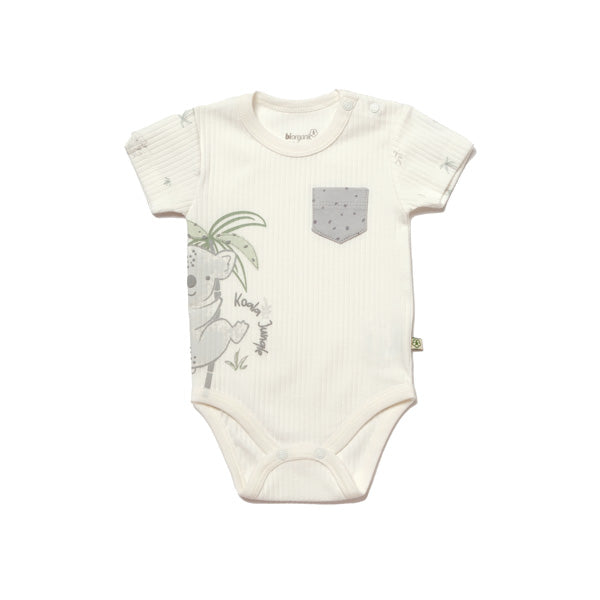 بدلة بي أورجانيك كوالا جانجل بأكمام قصيرة رمادية (مقاس 86) مقاس 18-24 م