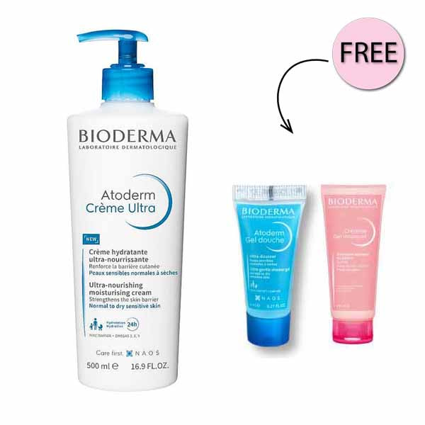 كريم بيوديرما أتوديرم المغذي للغاية ٥٠٠ مل + جل أتوديرم دوش ٥ مل مجانًا + جل سينسيبيو موسانت ٨ مل مجانًا