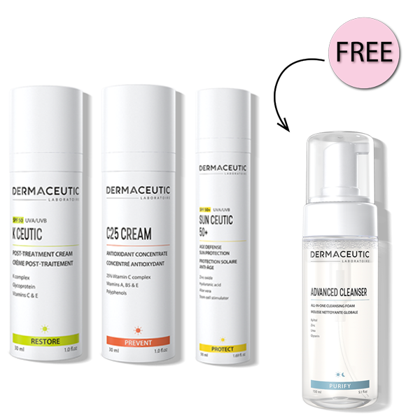 تحتوي هذه المجموعة على: 1- كريم ديرماسيوتيك كيه سيوتيك لما بعد العلاج 30 مل 2- كريم ديرماسيوتيك سي 25 المركز...