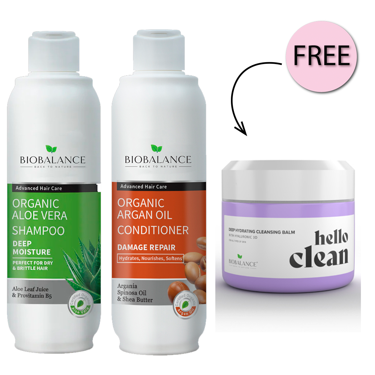 يحتوي هذا العرض على: شامبو بيو بالانس العضوي المرطب بعمق بخلاصة الصبار 330 مل بلسم بيو بالانس لإصلاح الشعر التالف...