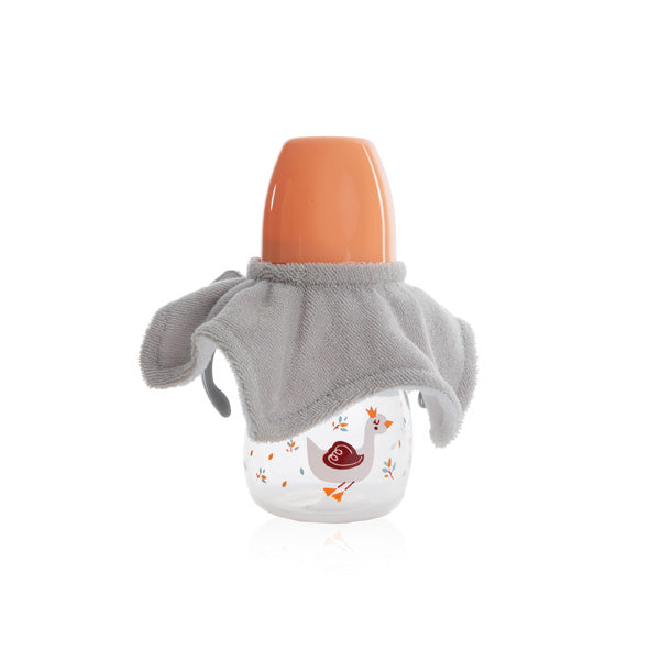 مريلة رضاعة بيبي جيم رمادية اللون، تمنع تسرب الحليب من الزجاجة، مما يحافظ على جفاف طفلك وراحته. توفر سطحًا ناعمًا ليديك أثناء الرضاعة، مما يمنحها مظهرًا أنيقًا. مصنوعة من قماش تيري قطني 100%. مناسبة لجميع أنواع زجاجات الرضاعة. قابلة للغسل في الغسالة.