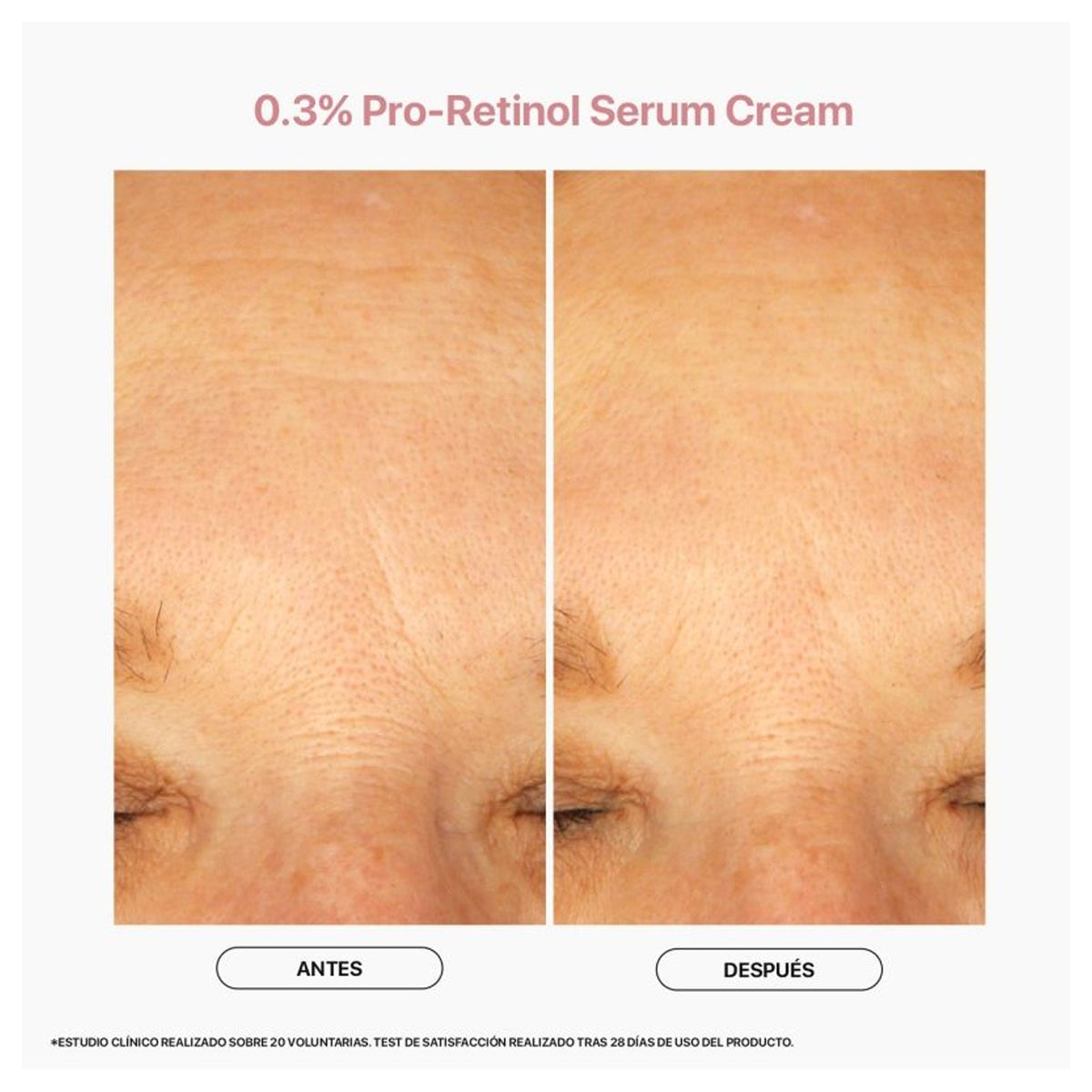 - It stimulates collagen synthesis and improves cell regeneration to smooth wrinkles and enhance skin texture. Formulated with a 0.3% retinol precursor, this dual-action serum-cream reduces wrinkles and improves the appearance of expression lines, corrects all types of dark spots, and evens out skin tone. At the same time, it improves skin firmness, leaving your skin visibly younger.