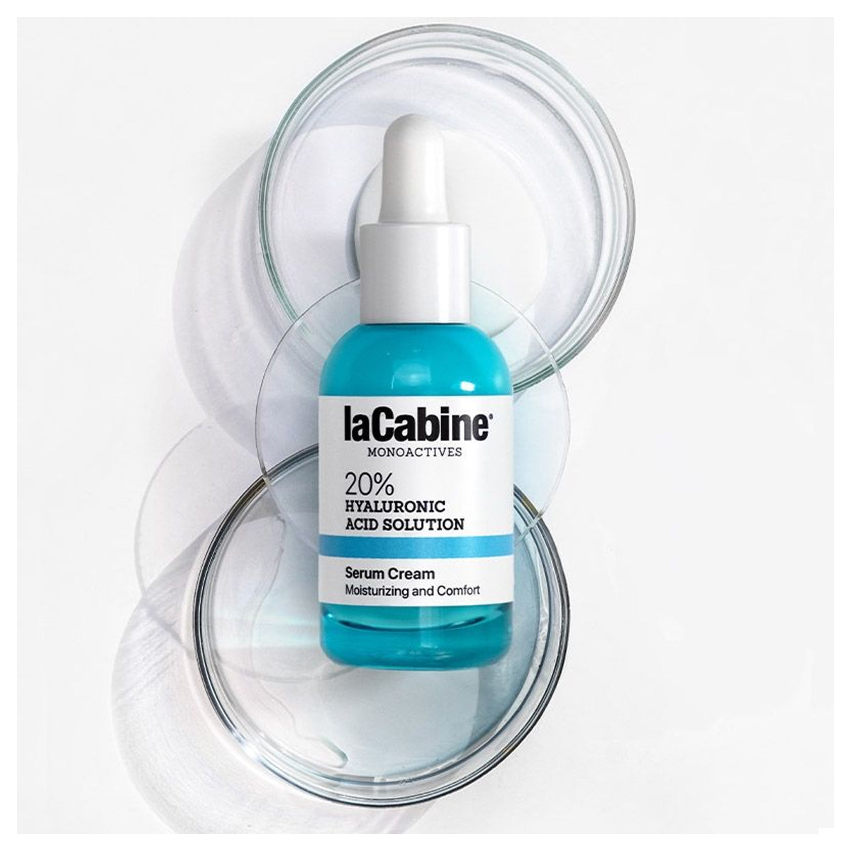 Lacabine 20% Hyaluronic Acid Solution 2 in 1 Serum Cream 30ml is a 2-in-1 serum cream with 20% Hyaluronic Acid in solution.