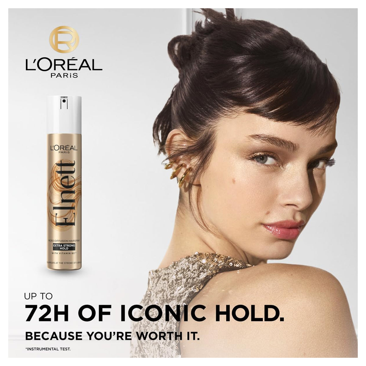 Loreal Paris Elnett Extra Strong Hold Hairspray 400ml is L’Oréal Paris’ most iconic brand used by the finest stylists. Styling women for generations, the gold can has always been at the heart of great style