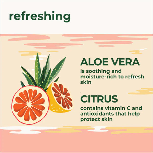جل الاستحمام المنعش بيتال فريش بالألوفيرا والحمضيات 475 مل. أنعشي حواسك مع جل الاستحمام المنعش بيتال فريش® بالألوفيرا والحمضيات النقي. تركيبة غنية بالصبار العضوي المعتمد والحمضيات فائقة الترطيب، لا تنظف فحسب، بل تنعش أيضًا.
