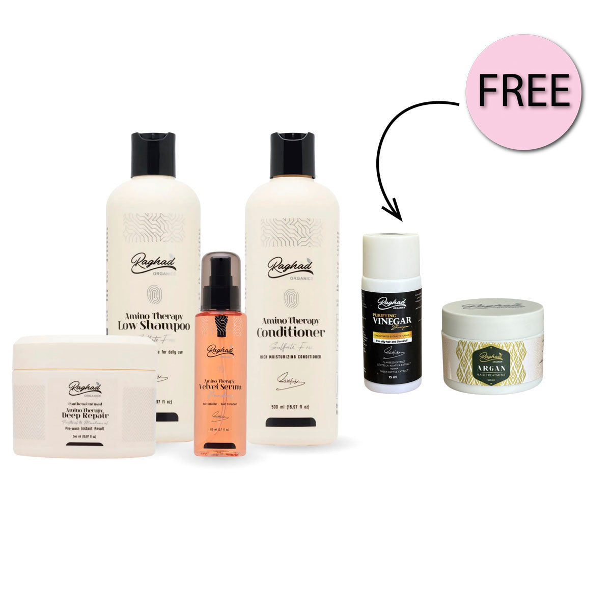 Deema Alrousan Raghad Organics Amino Therapy Package + Free Vinegar Shampoo 15ml & Argan Treatment 50ml