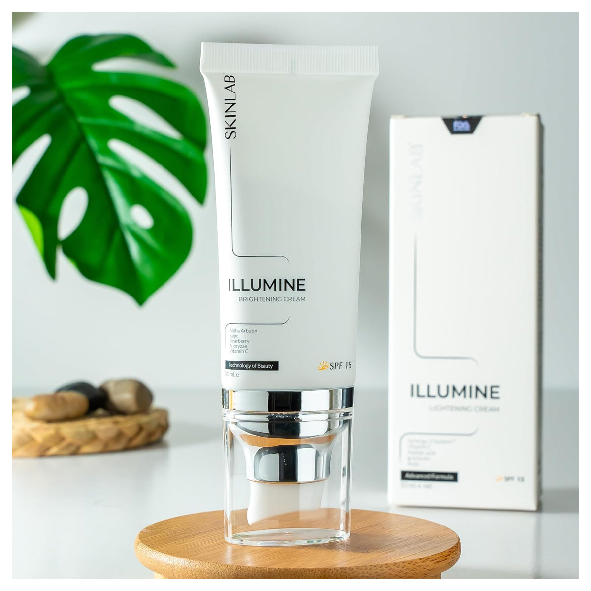 Skinlab Illumine Whitening 50ml كريم تبييض يحتوي على ألفا أربوتين وحمض الكوجيك وفيتامين سي. يزيل النمش والكلف والبقع العمرية وعلامات حب الشباب.