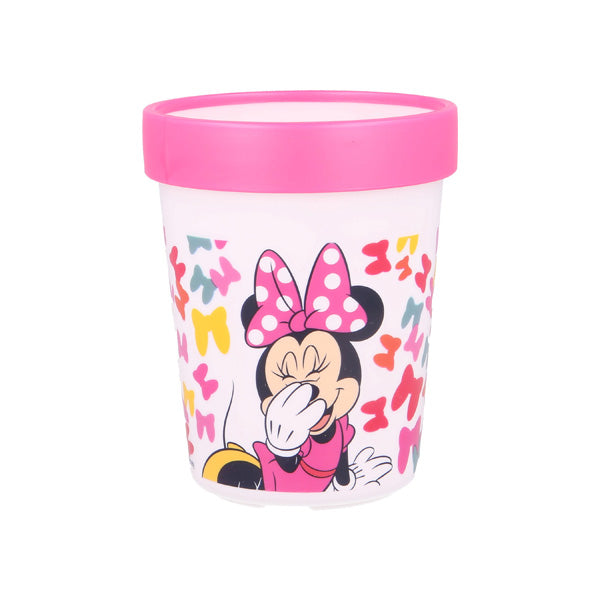 كوب ستور الفاخر ثنائي اللون غير قابل للانزلاق، بتصميم ميني سو إيدجي بوز، سعة 260 مل، بقاعدة مانعة للانزلاق تُثبّت على أي سطح أملس. هذا الكوب القابل لإعادة الاستخدام آمن للاستخدام في الميكروويف ومصنوع من بلاستيك خالٍ من بيسفينول أ. سيحبه الأولاد والبنات على حد سواء، فهو مزين بشخصياتهم المفضلة.
