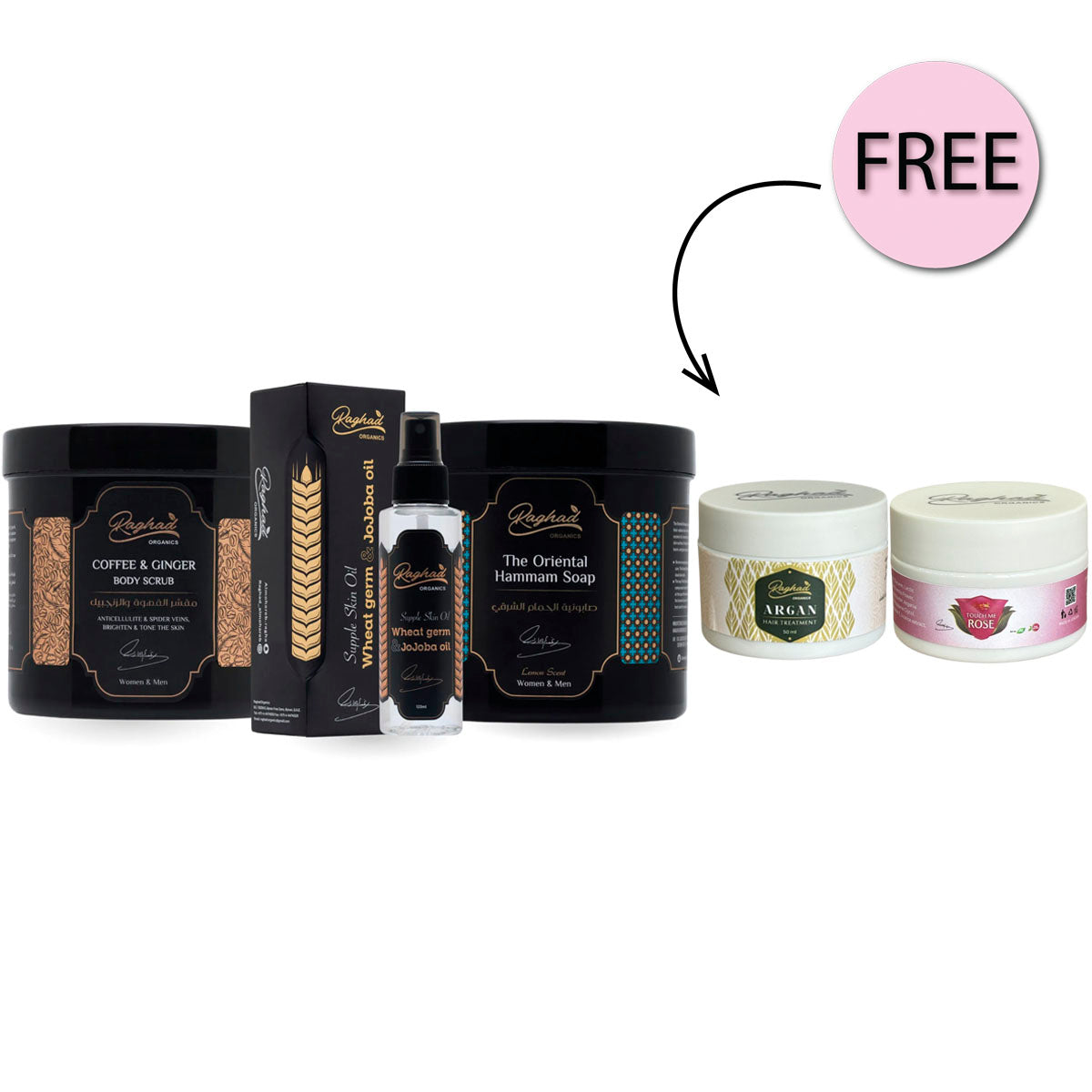Raghad Organics Bride Package + Free Argan Hair Treatment 50ml + Free Touch Me Rose Body Scrub 50ml