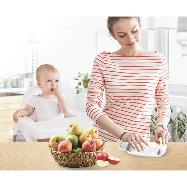 Babyjem Plastic Grater Ecru fruit grater makes it easier for your baby to transition to solid food, because the fruit is crushed and passed through the grater, leaving a slight roughness. You can grate the fruits peeled in the middle and feed the puree collected on the edges to your baby.