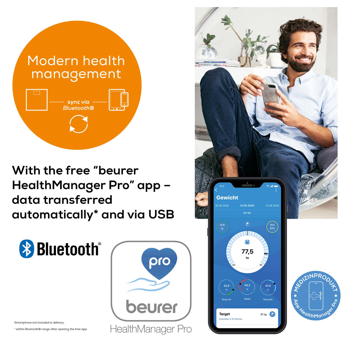 - Including free "beurer HealthManager Pro" app: Keep track of measurements and body data at any time