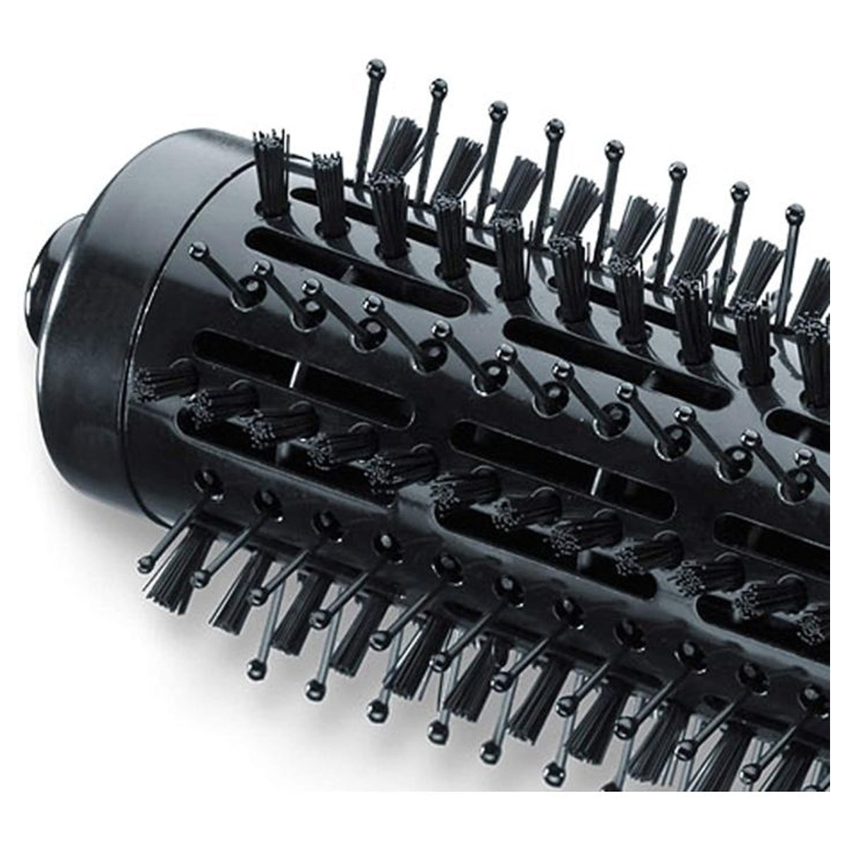 - 2 interchangeable attachments heated brush and curling brush