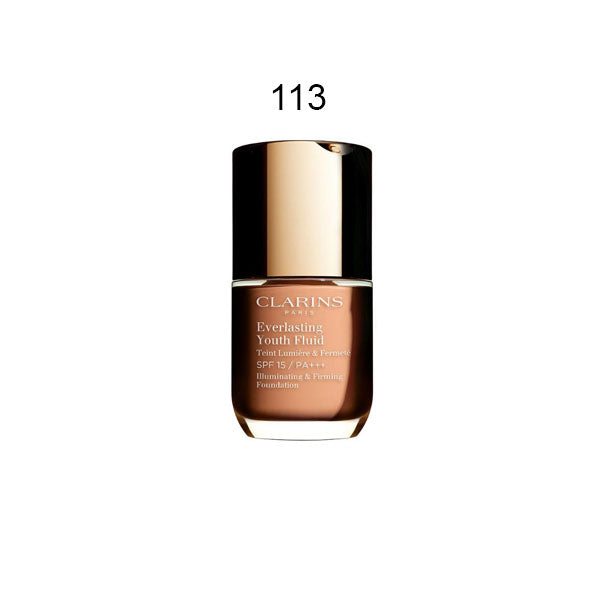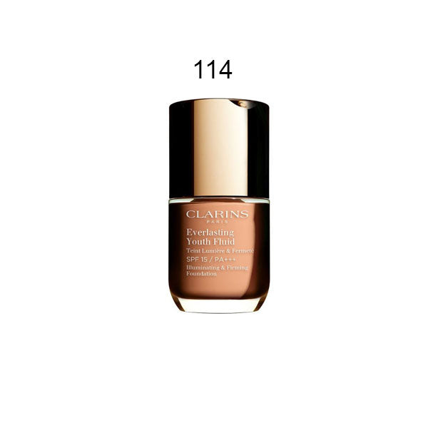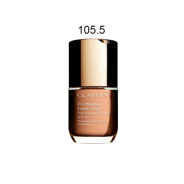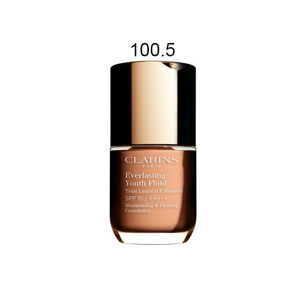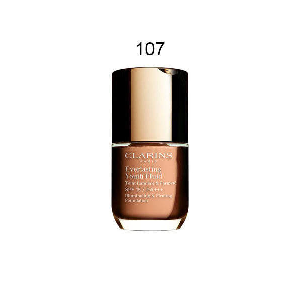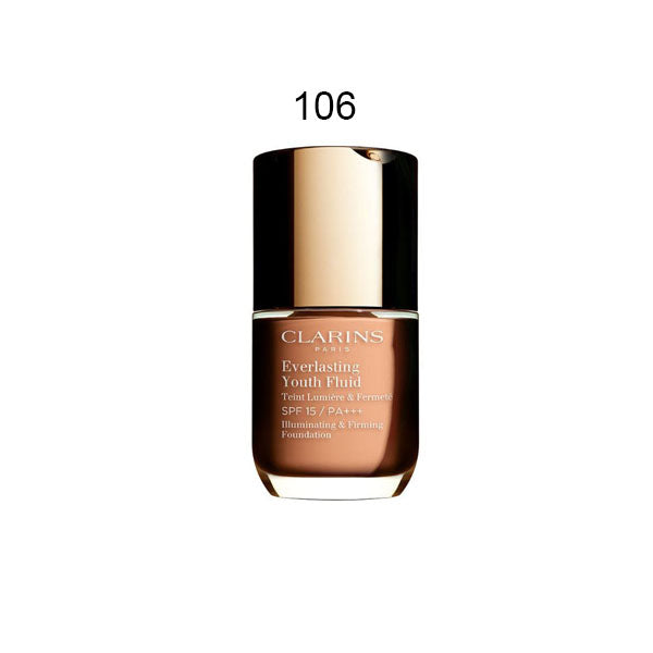 Clarins Everlasting Youth Fluid Spf15 30ml the foundation that fully restores your complexion's youthful glow. Instantly restore a glowing radiant complexion with this new Skin Tone Optimizing complex. Conceals age spots and imperfections. Contains extracts of chicory and red jania that help optimise the skin's luminosity and radiance. Day after day, your skin is firmer, plumped, smooth and radiant.