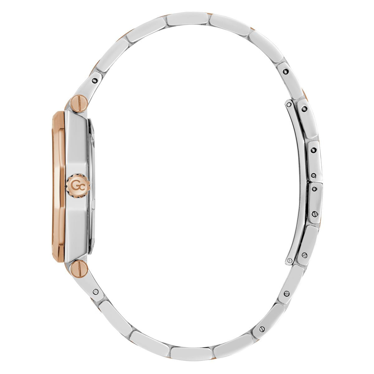 Captivate with the stunning Gc Gleam. This elegant 32mm timepiece blends silver and rose gold tones with a structured crystal-adorned top ring that sparkles with every movement. The eco-friendly denim blue mother-of-pearl dial delivers show-stopping sophistication. Perfect for the fashion-forward woman who demands both style and distinction in her accessories.