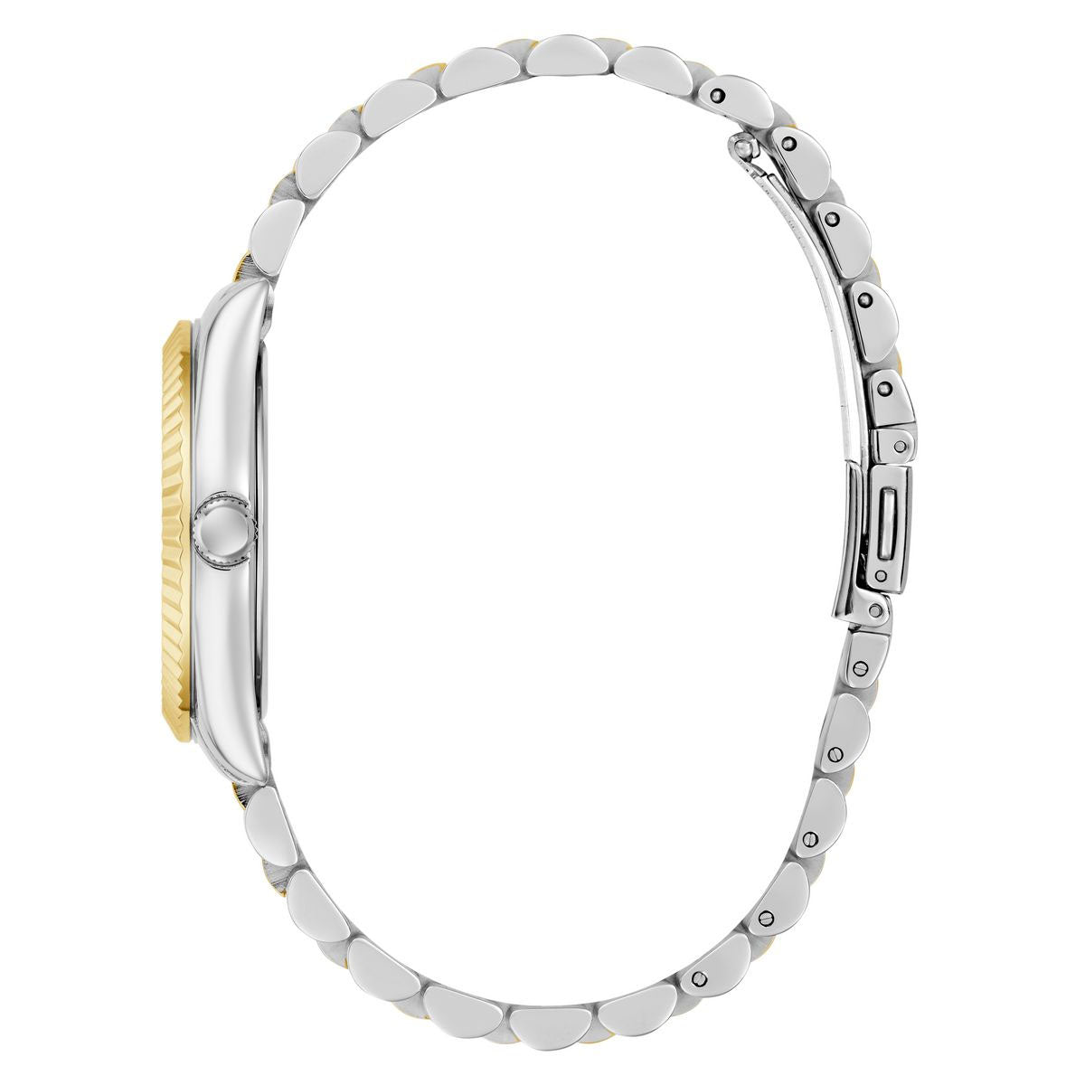 Guess - Gc Jada discover fresh, sleek sophistication with this timepiece that combines elegant design with practical functionality. Featuring a 34 mm round two-tone silver and gold tone polished recycled steel case with a jubilee style bracelet. The green sunray dial features a date window and 24-hour movement sub dial and is complemented by crystal markers and framed by a distinctive coin edge bezel that ties together this beautiful timepiece. Built with mineral lens protection, precise quartz analog movement, and 30-meter water resistance, this versatile watch is perfect for the woman who demands both style and substance in her timepiece collection.
