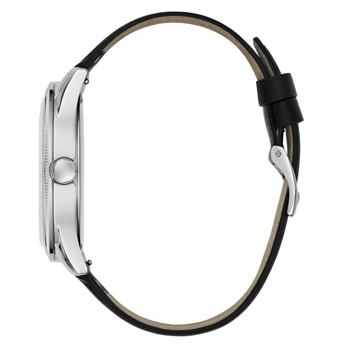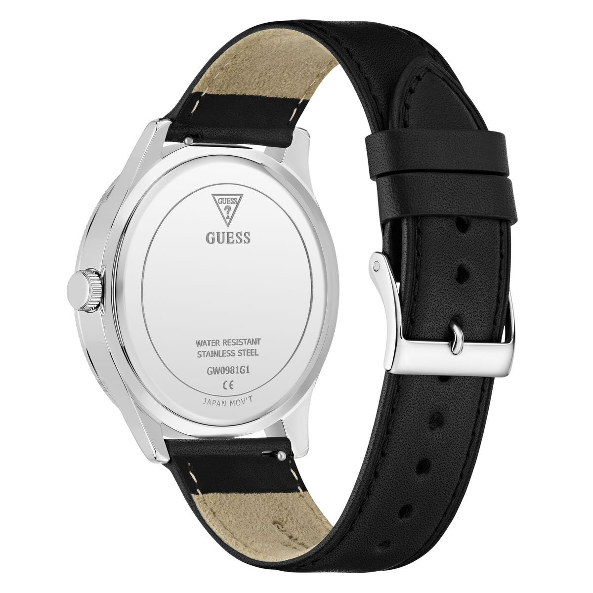 Guess - Gc Reputation let your reputation precede you with this logo look! Featuring a silver case with texturing and a GUESS logo dial paired with a black smooth leather strap and is interchangeable with a black smooth silicone strap.