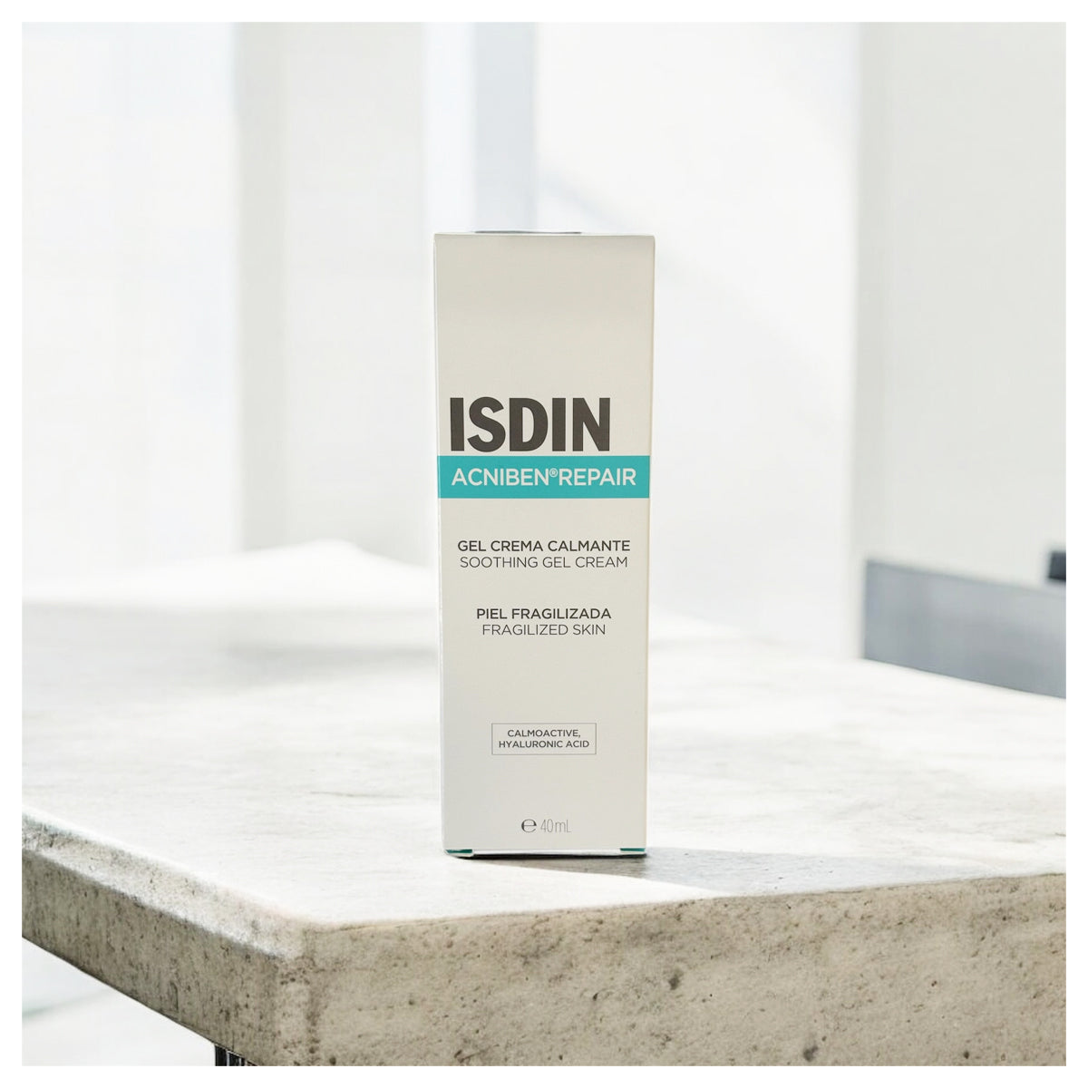 Isdin Acniben Repair Moisturizing Soothing Gel-Cream 40ml is a face care that helps reduce dryness, irritation and peeling, indicated for the specific care of skin undergoing anti-acne treatments. After a gentle cleansing it is necessary to relieve and restore fragile skin by anti-acne treatments. Moisturizes intensely and prolonged thanks to its specific formula with calmaactive, glycerin and hyaluronic acid. Quick absorption without leaving greasy residues. No perfumes or preservatives. With its complete formula, this cream helps to eliminate dryness, irritation, and flaking and provides intense and prolonged hydration, thanks to calmoactive, glycerin, and hyaluronic acid. It is easily absorbed and does not leave greasy residues on the skin. Indicated for adolescent skin with acne-prone tendencies.