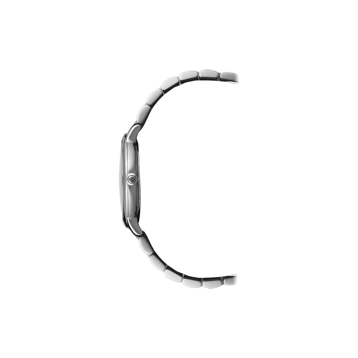Equipped with a quartz movement, this toccata men’s classic white dial bracelet watch features a 39mm stainless steel case with a date window at 3 o’clock, and black Roman numeral markers to add a touch of warmth to this modern classic.