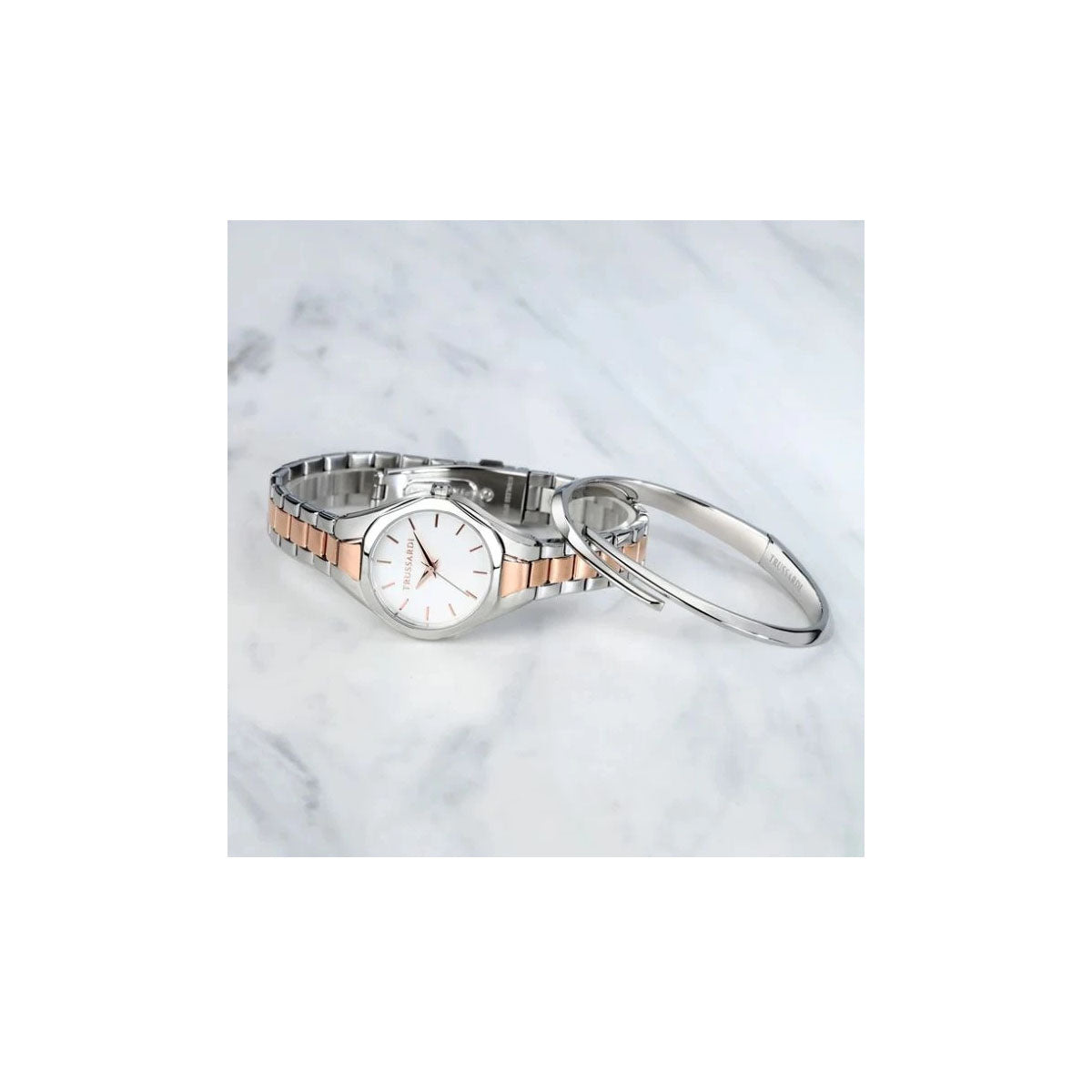 Trussardi Metropolitan R2453159503 Women's Watch 30mm Silver Gold Gift Set Gender: Female, Case Material & Finish: Stainless Steel, Metal alloy, Case size: 30mm, Case thickness: 8, 00, Finishing: Polished, Case Color: Silver, Crystal: Mineral crystal, Strap Material: Metal, Strap Color: Silver, Pink gold, Clasp type: Deployant buckle with push buttons, Movement: Quartz, Water resistant: 5 ATM.