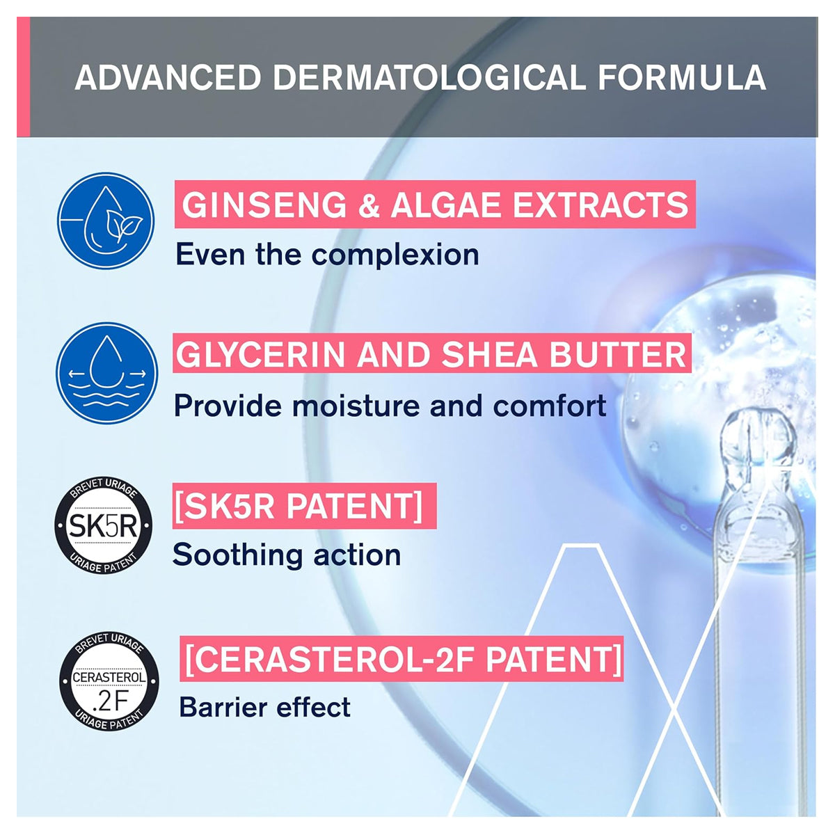 -Uriage Thermal Water rich in minerals and trace elements, it intensely soothes, hydrates, and strengthens the skin’s natural defenses.